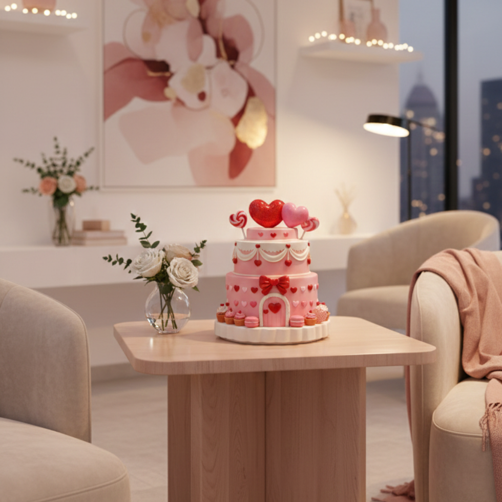 Celebrate Valentine’s Day in the sweetest way with the Love Is Sweet Valentine Celebration Cake, a charming resin tabletop decoration inspired by an irresistible tiered dessert. Featuring soft pink layers, draped frosting details, heart accents, and a glossy heart topper, this whimsical cake captures the joy and romance of a Valentine celebration.