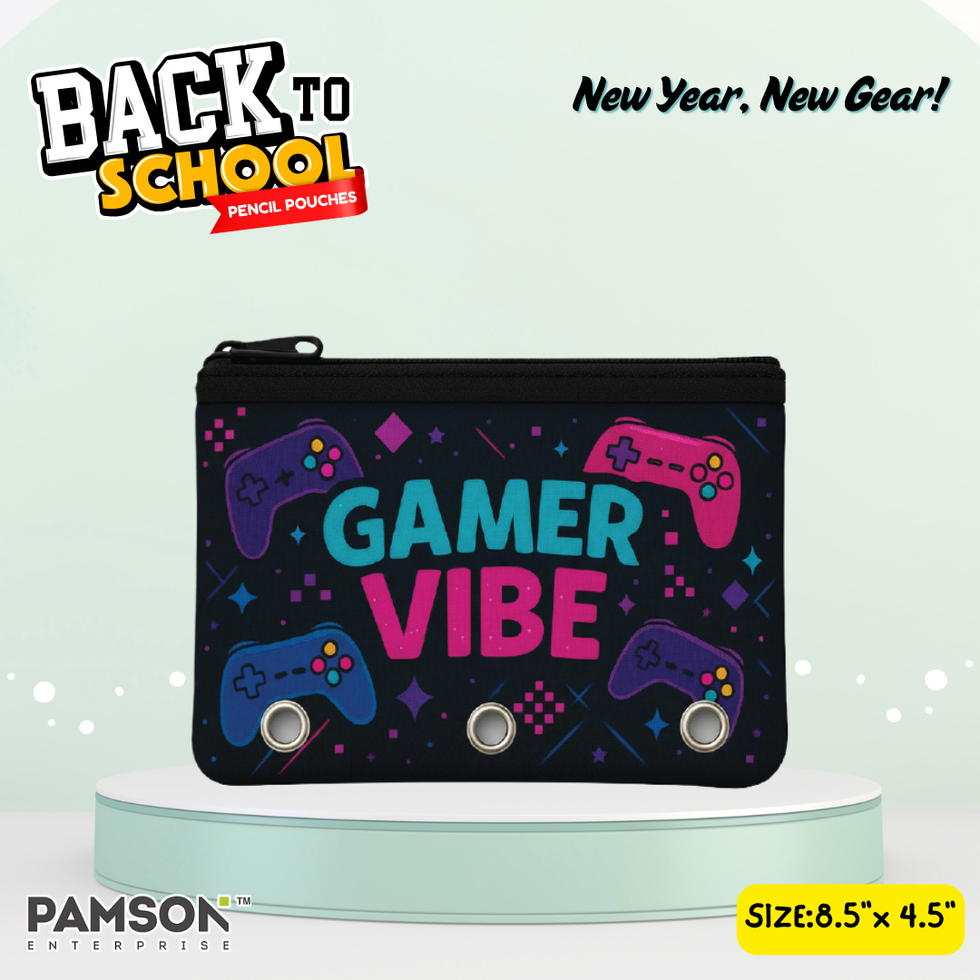 Step into a new era of style and self-expression with the Next-Gen Vibe Pouch Collection where fashion meets function. Designed in the most popular 8.5” × 4.5” size with a bold oversized zipper head, each pouch brings together trend-driven graphics and durable neoprene material to create the ultimate school and lifestyle accessory. From neon gamer controllers and retro music icons, to cosmic constellations, mythical legends, and cyberpunk energy, every design is crafted to reflect the passions of today’s kids and teens.